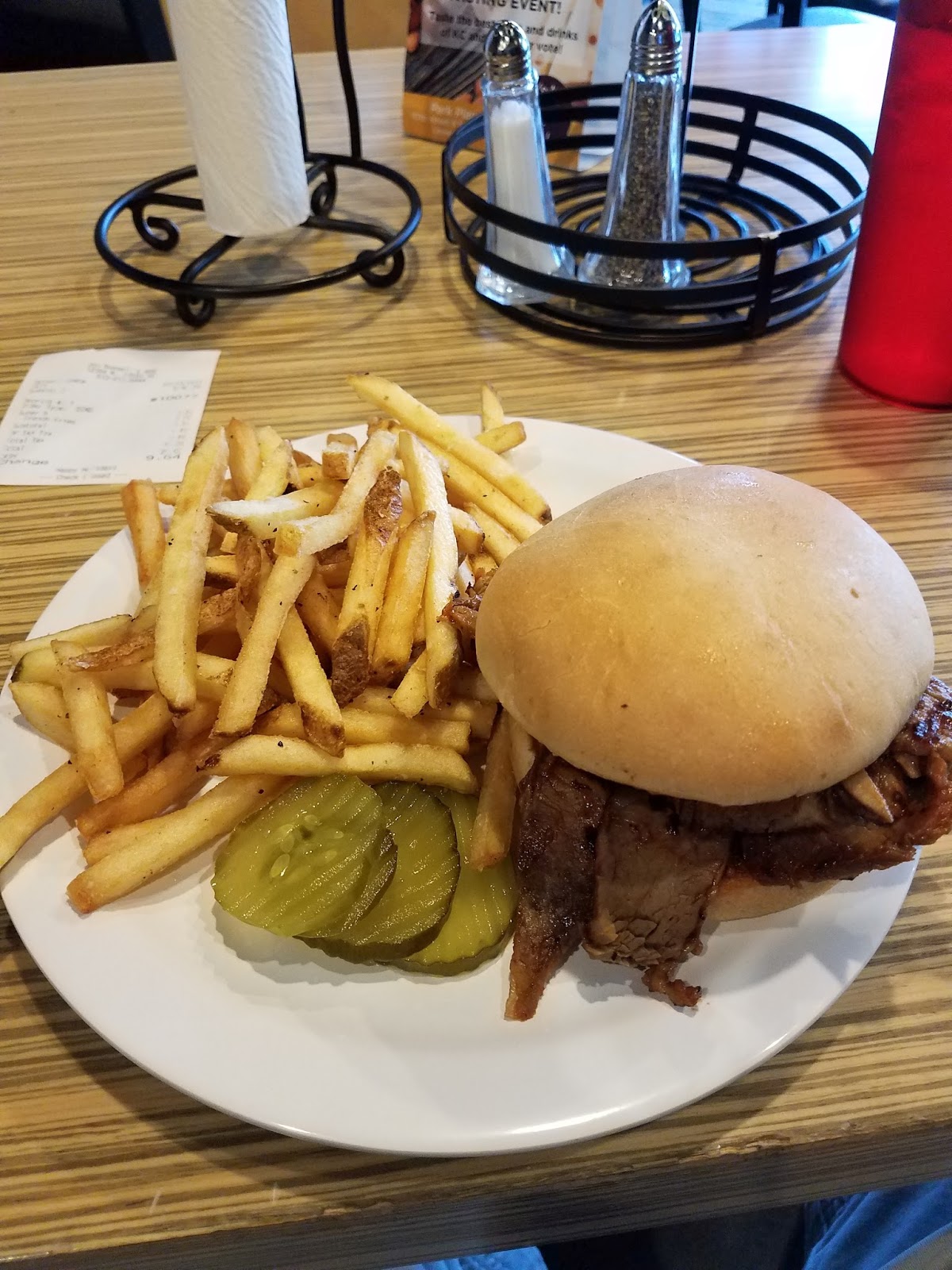 Their ‘John Russell’ sandwich is my personal favorite bbq sandwich in the city. It’s burnt ends and sausage on a soft potato bread. Their blueberry habanero sauce pairs with it so well. With the sauce and sausage it has great spice. I highly recommend that sandwich. Oh and one time they had a mishap in my order so they gave me some free ribs, they were excellent!