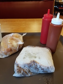 At Wyandot BBQ, you order and pay at the counter and seat yourself. They do have a counter you can sit at as well as tables. I got my food really quickly. Both the sandwich and fries come wrapped as you can see in the photo above. The sandwich is served on bread with sauce on it. The beef is shredded, not sliced. This is the first place I’ve visited that serves their brisket sandwich shredded or pulled.