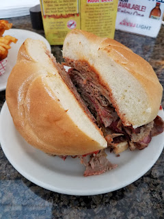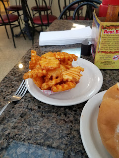 I arrived around 4:00 on Monday for a late lunch/early dinner. I was the only one in the restaurant at the time I arrived. This is a sit down restaurant where you choose where you want to sit and a waitress serves you. My waitress was quick to greet me and give me a menu and take my drink order. In looking at the menu, I noticed their beef brisket sandwich does not come with a side dish, so I ordered their brisket sandwich with a side of their spicy fries. I received my order about five minutes after placing the order.