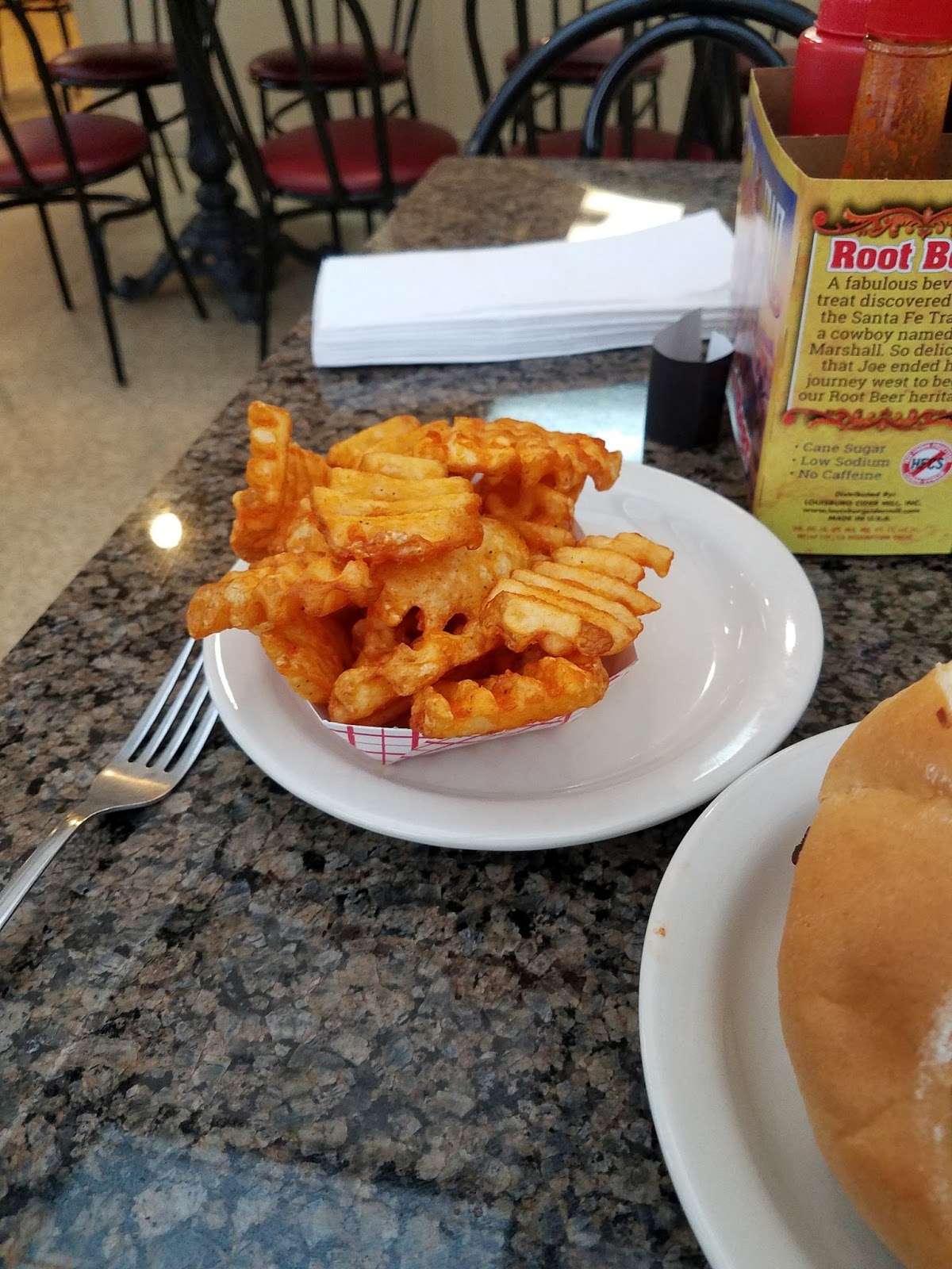 I arrived around 4:00 on Monday for a late lunch/early dinner. I was the only one in the restaurant at the time I arrived. This is a sit down restaurant where you choose where you want to sit and a waitress serves you. My waitress was quick to greet me and give me a menu and take my drink order. In looking at the menu, I noticed their beef brisket sandwich does not come with a side dish, so I ordered their brisket sandwich with a side of their spicy fries. I received my order about five minutes after placing the order.