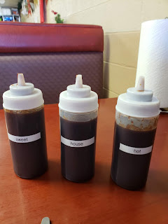 They do offer three sauces at each table, a sweet sauce, a house sauce and a hot sauce.  I tried the sauces with my fries.